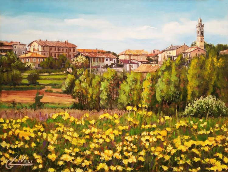 Borgio verezzi - Olio su tela sabbiata cm 50x60