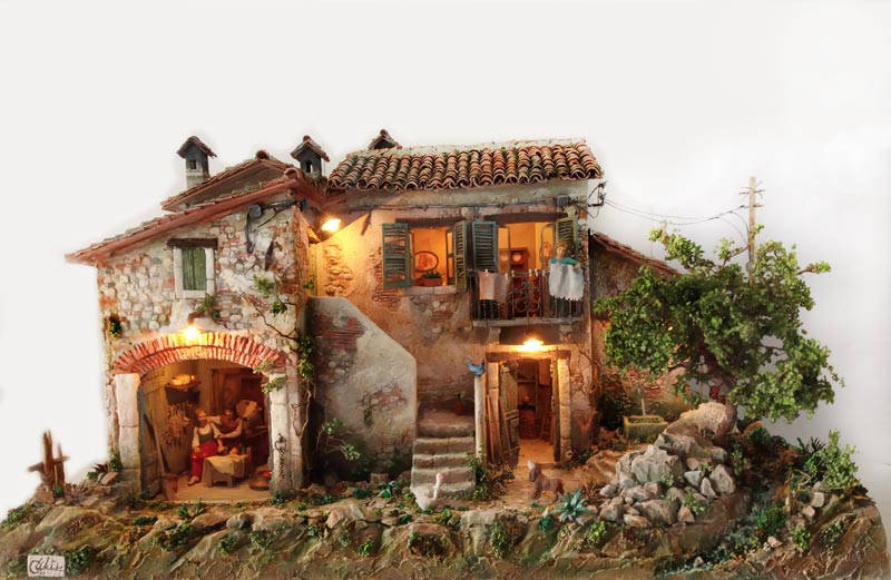 Il due paesi - Presepe realizzato senza scomporre la damigiana